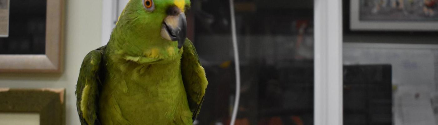 I received a text from a lady asking me if I could bring in a yellow naped amazon with neurological problems. As she started describing the bird…I realized who she was talking about. Emmy was a XXX rescue…I had met her a few times. She suffers from ataxia…so she’s a bit off balance and tends to stare off into space for long periods of time. When I asked her what was wrong and why she was giving Emmy up she simply said she wanted to start traveling, but in that one phone call, I knew that her house was not a house Emmy should be in anyway. She explained to me how she would let Emmy sit outside on top of the cage outside…with NO enclosure! Had she ever spooked over something and flew off – Emmy would NOT have survived. She doesn’t have the mentality to know how to survive. So, I knew I had to get her out of there right away!