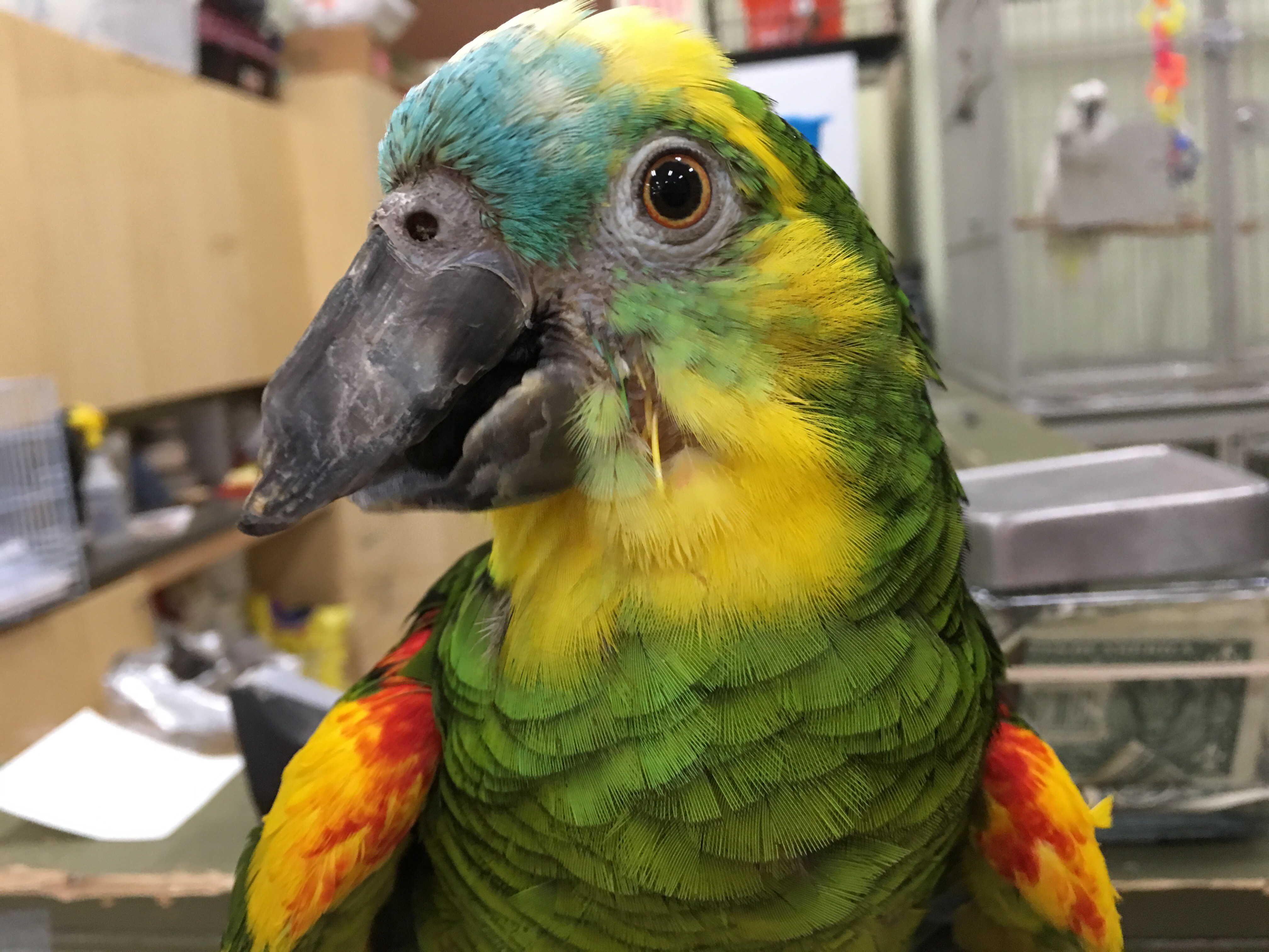 As you can see Nikkie was born with a beak deformity. Nikkie was with the same people for 27 years. Unfortunately her dad was diagnosed with Parkinson’s. They had no choice to give her up. Nikkie was fed people food her entire life…but she remains pretty healthy and immediately developed a strong bond with me. She’s an amazing baby and keeps me laughing.