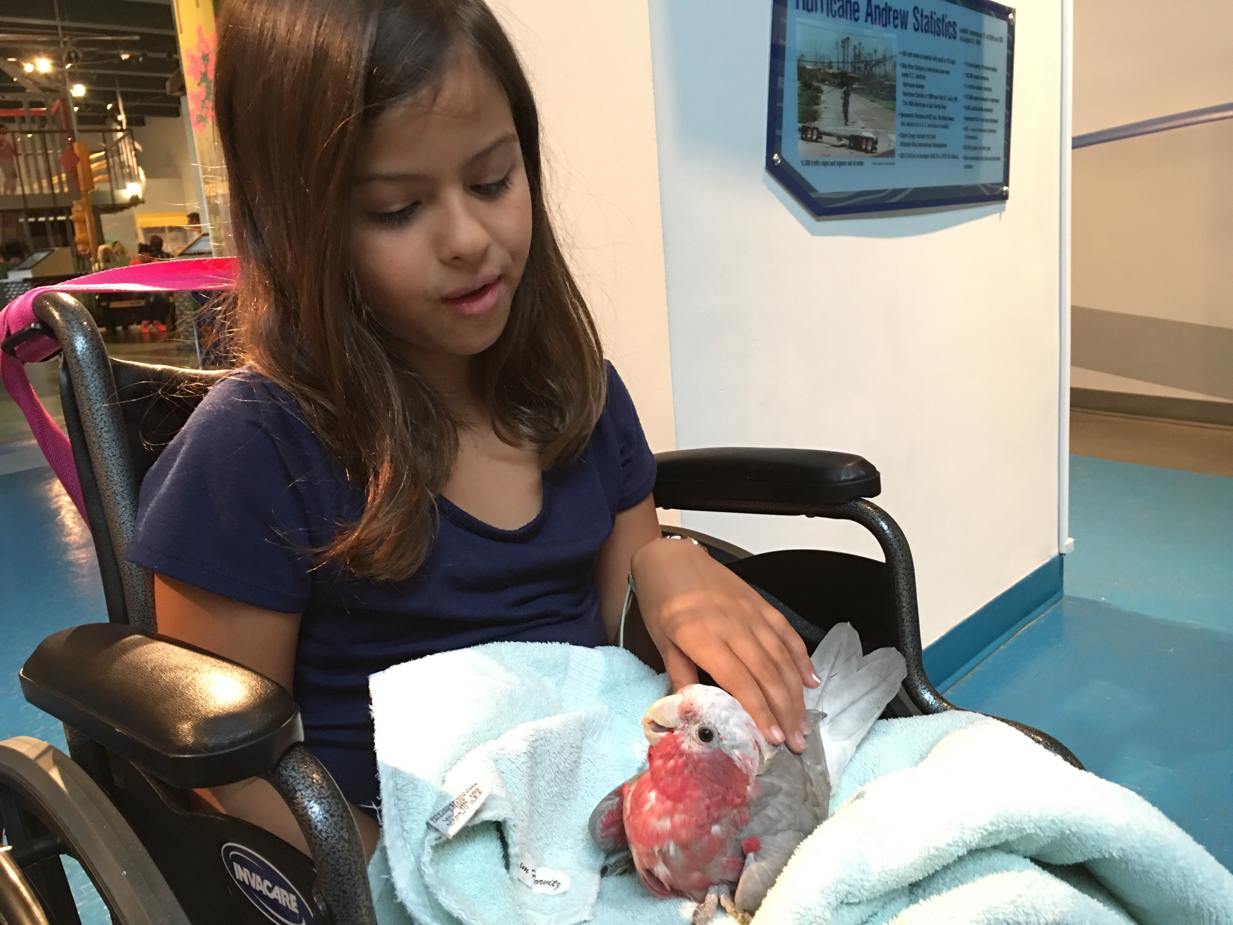 Scooter has neurological problems caused by metal toxicity. One of her parents fed her a small piece of metal which was just enough to cause irreversible damage. Scooter suffers from mobility issues and moments of shaking. However, she loves to go to the museum. She teaches the children about differences…and they get to hold her and love on her the entire time. It’s a win win for both.